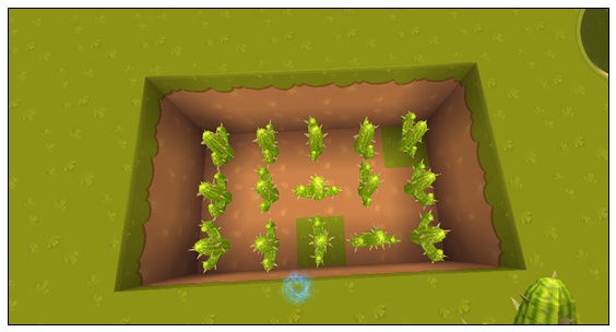 最终陷阱效果:当进入陷阱区域时就会被隐藏的仙人掌扎到,持续掉血,扣血的人一头雾水。