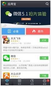 腾讯手机管家PC版改名为后,应该是腾讯力推的产品了,继《全民英雄》《天天飞车》等精品游戏在腾讯应用宝抢先体验并获得用户广泛好评后,备受关注的微信5.1版也于昨日在新版应用宝抢先体验,下面带来微信5.1版的内测申请及下载方法介绍。