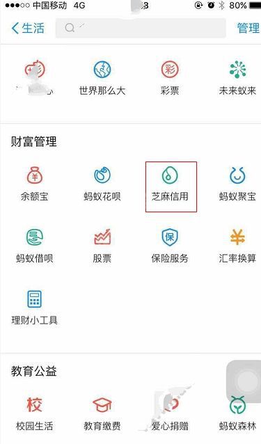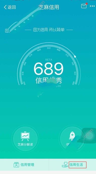 第二步:在芝麻信用中,点开如下图所示,红框内的【信用生活】。