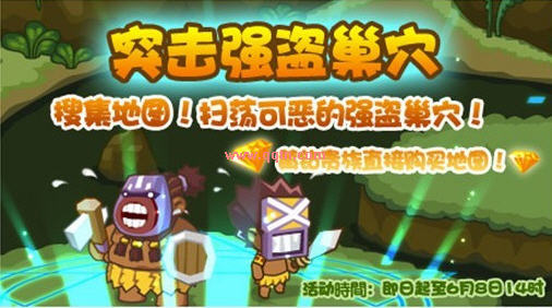 2.起所有的石板,合成入侵者老巢的地图(在王国炼金室里合成),使用地图进入强盗的老巢或通过游戏画面中的洞穴入口进入。但是要小心,强盗的小头目也在老巢里面哦!