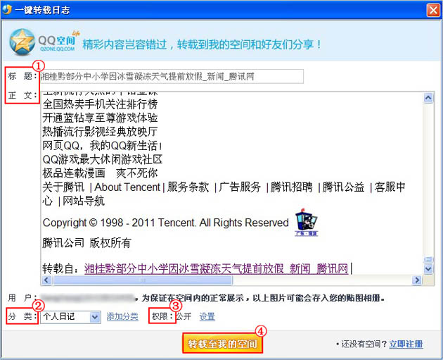 1、标题/正文:日志标题/正文直接默认网页中的相关信息,但您也可以手动修改标题/正文;