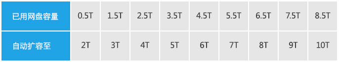 当您的空间使用到一定程度时,系统会自动为您扩容,具体规则见下表