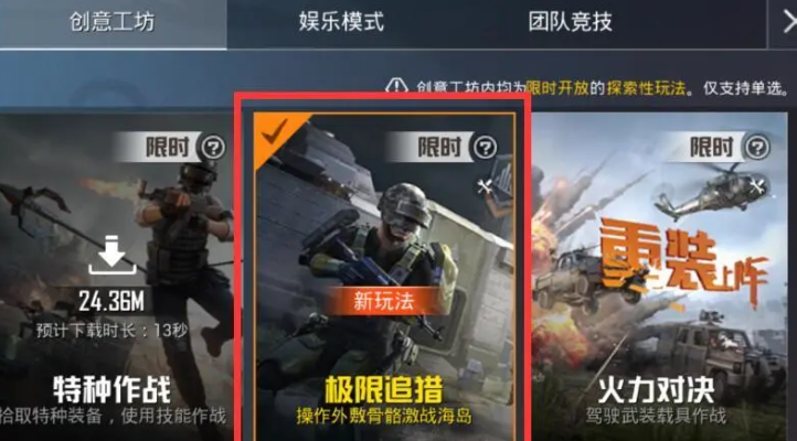 在创意工坊新增娱乐模式极限追猎当中,玩家们将给予的海岛图来进行作战。