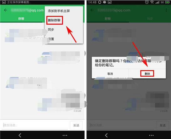 3)接着点击【删除群聊】,在提示框中点击【删除】。(如下图)