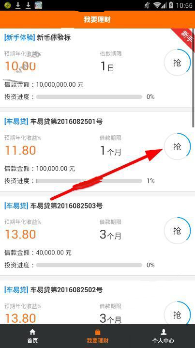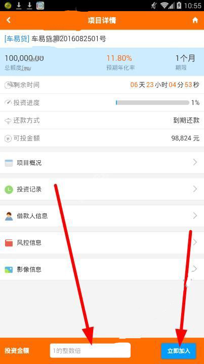 这里为大家呈现出琳琅满目的投资产品,每一种产品的年和收益率和期限都不一样,用户根据自身情况选择一种,点击后面的“抢”按钮,再详细了解投资详情后,输入投资金额,点击“立即加入”按钮即可。