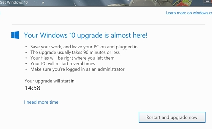 根据这些弹出框,你可以管理你的Windows 10升级安排。