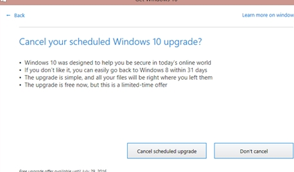 不想安排升级,点击 “更改升级安排或取消预定升级” 链接,然后在以下选择取消预定升级选项