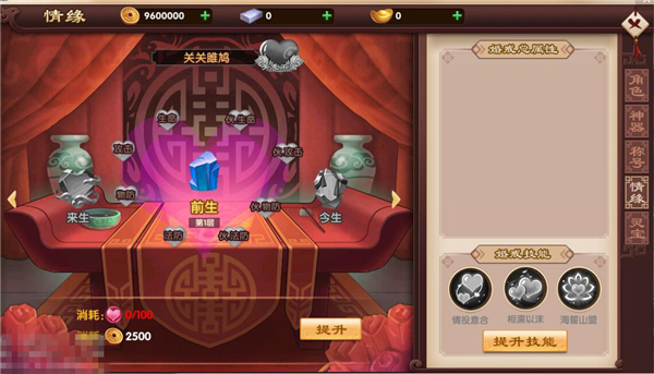 消耗缘分值可以激活三生石,可以获得大量伙伴属性和属性。