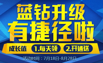7月18日至8月28日期间,已开通蓝钻的用户可以每天领取2点的成长值,如果你直接开启年费蓝钻的话,不仅可以享受8.8折的优惠,并且可以直接至三级蓝钻,并且有额外的礼包相送哦。