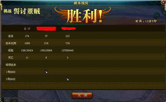 注:我这里是一个十二星铁血+一个九星扇子刷的。两人刷需要十三分钟。大概一亿多经验呢。死亡一共十一次。(装备不是很好的亲,建议多组点人。)