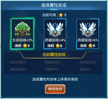 可选择的加成属性,属性加成越高的选项,需要的星星也越多: