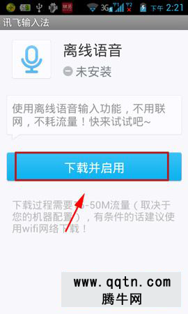 3、然后点击下载并启用,这因离线语音包有点大,所以下载过程中需要5-50M的流量