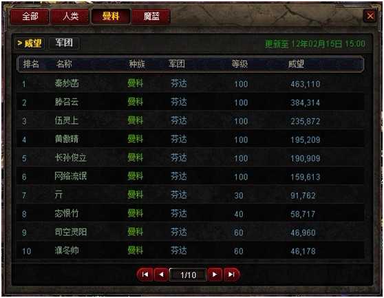 【活动规则】:双线1服开启后,至2月28日15:00时,各种族中威望排名前10名的玩家,即可获得丰富的奖励。排名以15:00时更新的排行榜信息为准。
