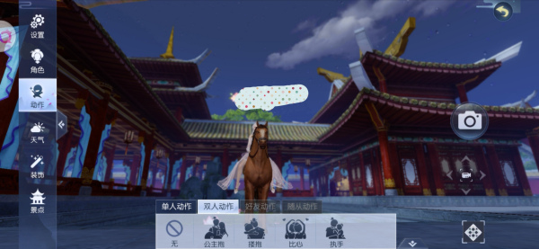 3.到达地点之后,点击,双人动作,和交互对象进行公主抱即可