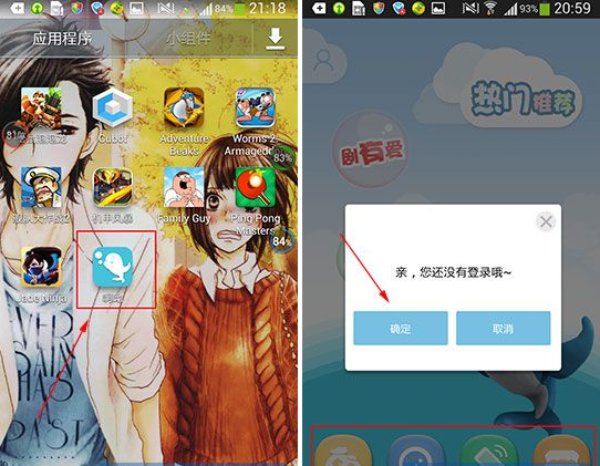 1、打开“啊呦”,随意点击一个栏目,然后点击“确定”。