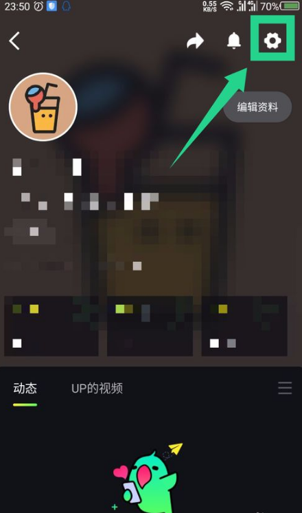 点击头像后,在打开的界面,同样需要点击右上角的设置。如图所示