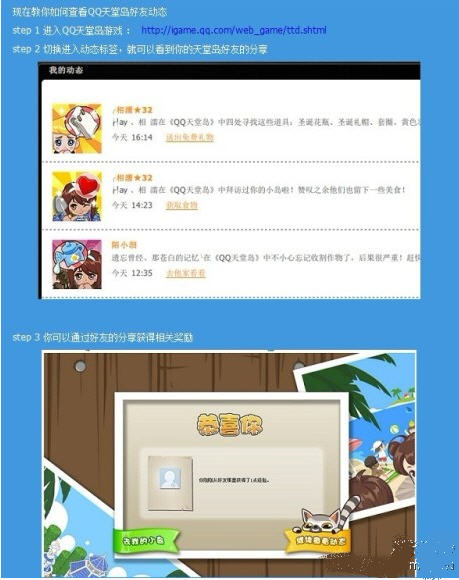 游戏人生已经完全连接天堂岛啦,好友动态无限送能量送食物送金币啊有木有!小岛我不多说了,赶紧去关注好友吧! 现在教你如何查看QQ天堂岛好友动态