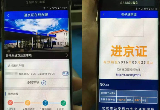 手机在线办理进京证流程:
