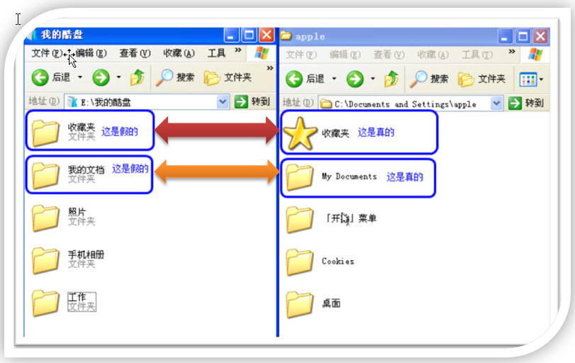 C:\junction E:\我的酷盘\收藏夹 "C:\Documents and Settings\apple\Favorites"