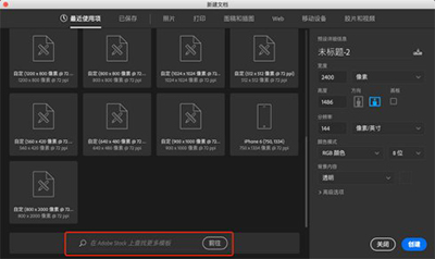 可轻松访问预设,并且可以从文件 》 新建获取免费的 Adobe 资源模板。
