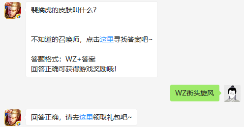 裴擒虎的皮肤叫什么?不知道的召唤师,点击寻找答案吧~格式:WZ+答案回答正确可获得游戏奖励哦!又到了每天的王者荣耀每日一题时间了,今天给玩家带来的是王者荣耀中裴擒虎的皮肤是什么的问题,很多玩家都听过裴擒虎这个新英雄,但是裴擒虎的皮肤是什么呢?很多玩家就不是特别了解了。今天小编便给大家带来王者荣耀裴擒虎的皮肤是什么的问题的回答,一起来看看吧。