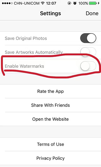 2、关闭第三个选项,修图就再也没有水印啦!