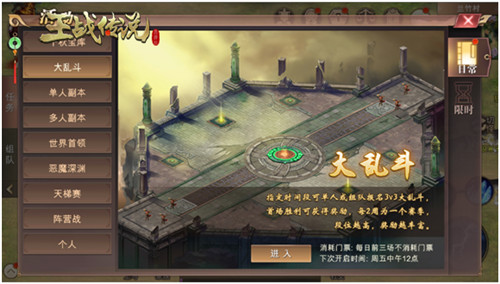 每场战斗持续90秒,战斗方式为3V3战斗,无复活,死亡后进入观战。