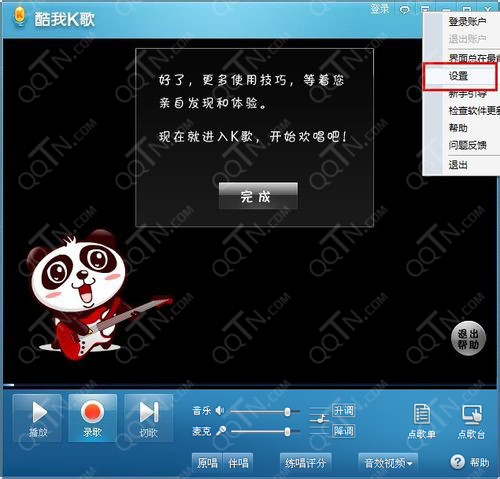 3.我们点击这个按钮,在弹出的菜单中选择“设置”,关于软件的设置对话框都从这里打开。 在里面可以对软件进行个性化设置。