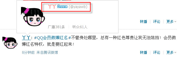 QQ会员微博红名特权,QQ会员点亮微博红名
