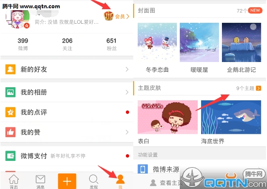1、首先,进入微博客户端,在我的选项中,点击会员功能,无论你是否开通会员,在昵称旁边,都会有会员的图标,然后找到主题皮肤后进入,如图: