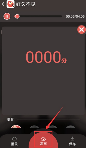 6、即可看到你的得分,再点击发布即可发起合唱哦。(清风小编演示给大家看,因此没有唱得分为0,并不能发布哦。)