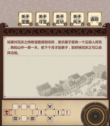 第一趟,走上路,在客栈的时候随便买一样东西,出来之后掌柜才会给藏宝图。