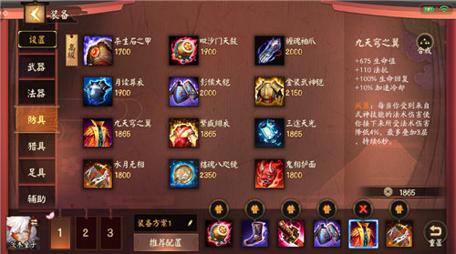 第四件撑下护甲用彭候大铠,第五件就是要用我们的九天苍穹了可以撑一下魔抗,最后一件是同时有护甲和魔抗的,出这个收益更高,想要血量的也可以出其他的撑血量。
