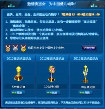 如果不兑换家具,奥运银牌还是可以使用的哦,使用后可以获得1万钞票,怎么算都划算,激情奥运,让我们欢乐共享。