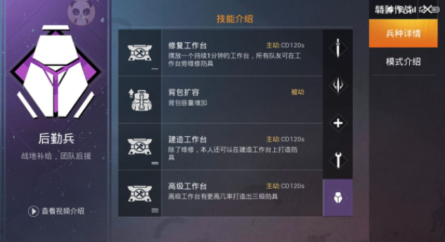 工程兵:架设掩体,维修载具,强化维修载具,强化架设掩体
