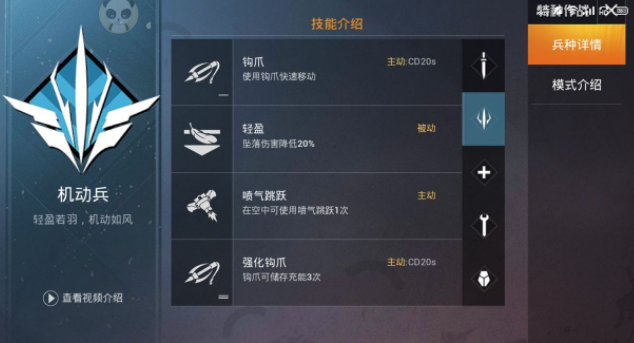 机动兵:钩爪,轻盈,喷气跳跃,强化钩爪