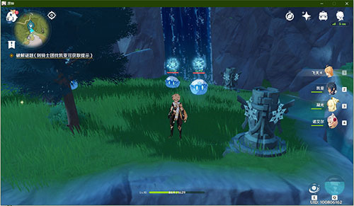 玩家来到如图所示的位置,可以看到一个瀑布,然后在这个瀑布的左边位置,玩家可以看到这个冰属性的史莱姆,在附近还可以看到三个封印的柱子,玩家需要歼灭这些史莱姆,并且使用冰属性攻击来攻击这些柱子,然后就可以解开封印,顺利出现一个宝箱打开即可完成这个宝箱的线索2。