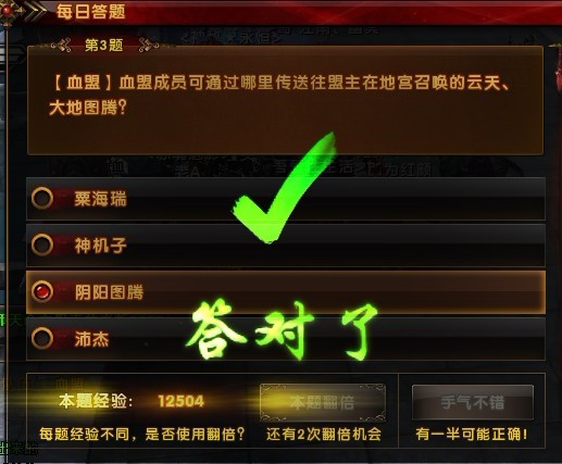 题目3:血盟成员可通过哪里传送往盟主在地宫召唤的云天、大地图腾?