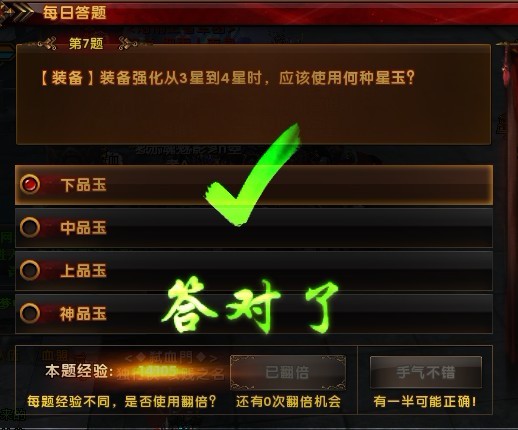 题目12:装备强化从3星到4星时,应该使用何种星玉?