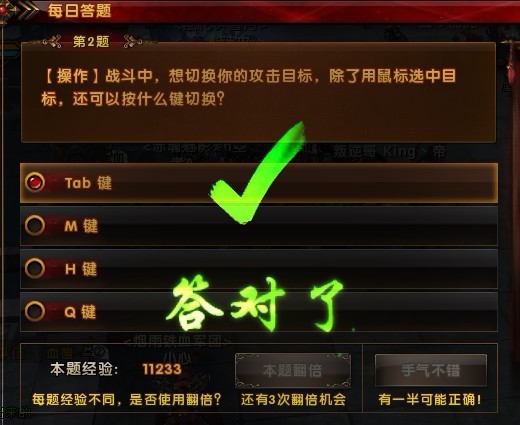 题目11:战斗中,想切换你的攻击目标,除了用鼠标选中目标,还可以按什么键切换?