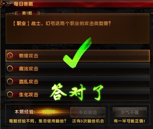 题目10:战士、幻弓这两个职业的攻击类型是?