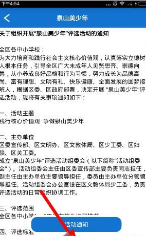 2、在这里你可以点击查看活动通知,为你详细的介绍的泉山获得主题,主办单位,评选范围,评选标准,评选程序等内容,