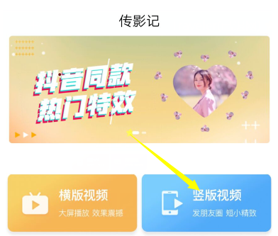 2.我们打开下载好的传影记APP,点击竖版视频模板;