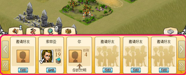 参观好友时有时会接到一些任务,给一些银币和经验奖励。在自己首都时,有时也会弹出去帮助好友的任务。