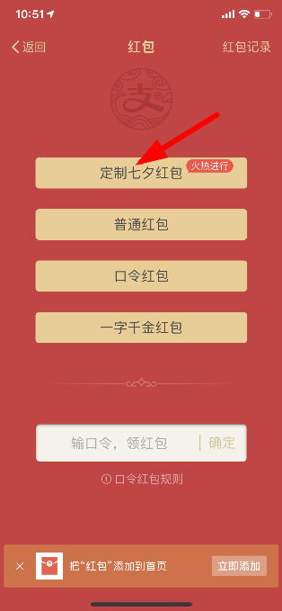 进入后,即可看到定制七夕红包