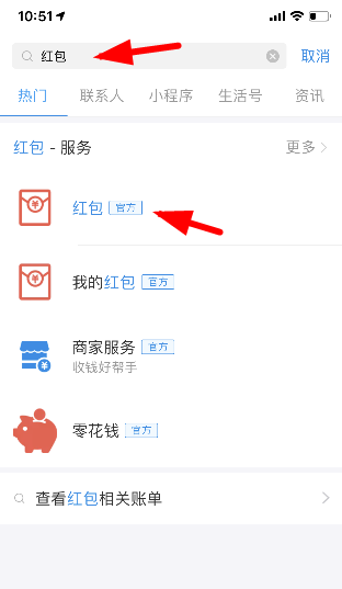 首先打开手机支付宝app,搜索红包,如下图所示: