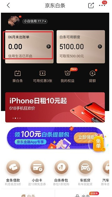 第二步在我的界面点击白条后,点击账单,如下图所示: