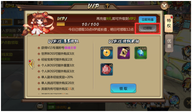 2.(非充值方式)获取VIP等级,获取更多特权福利级礼包福利;