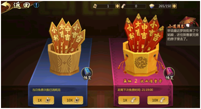 1.普通算卦:消耗1张普通卦纸,获得500金币,同时赠送寄灵人,守护灵碎片和珍惜道具。