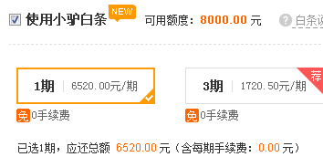 消费分期手续费:月手续费1% 支持借记卡:工行,农行,中行,建行,邮储,中信,光大,兴业,平安; 白条可选择分期还款,分期期数为3、6、9、12期。白条还款日为客户自行选择的还款日。